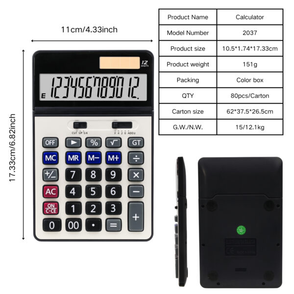 • Clear and Readable Display: With a 12-digit display, this calculator ensures that results are easy to read and calculations are clear and precise.