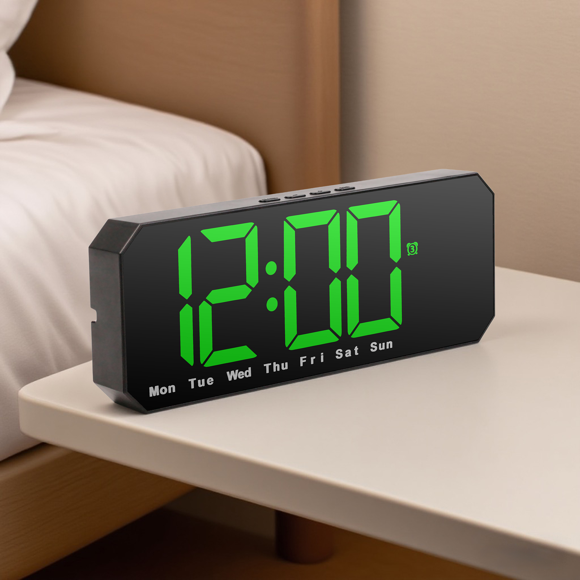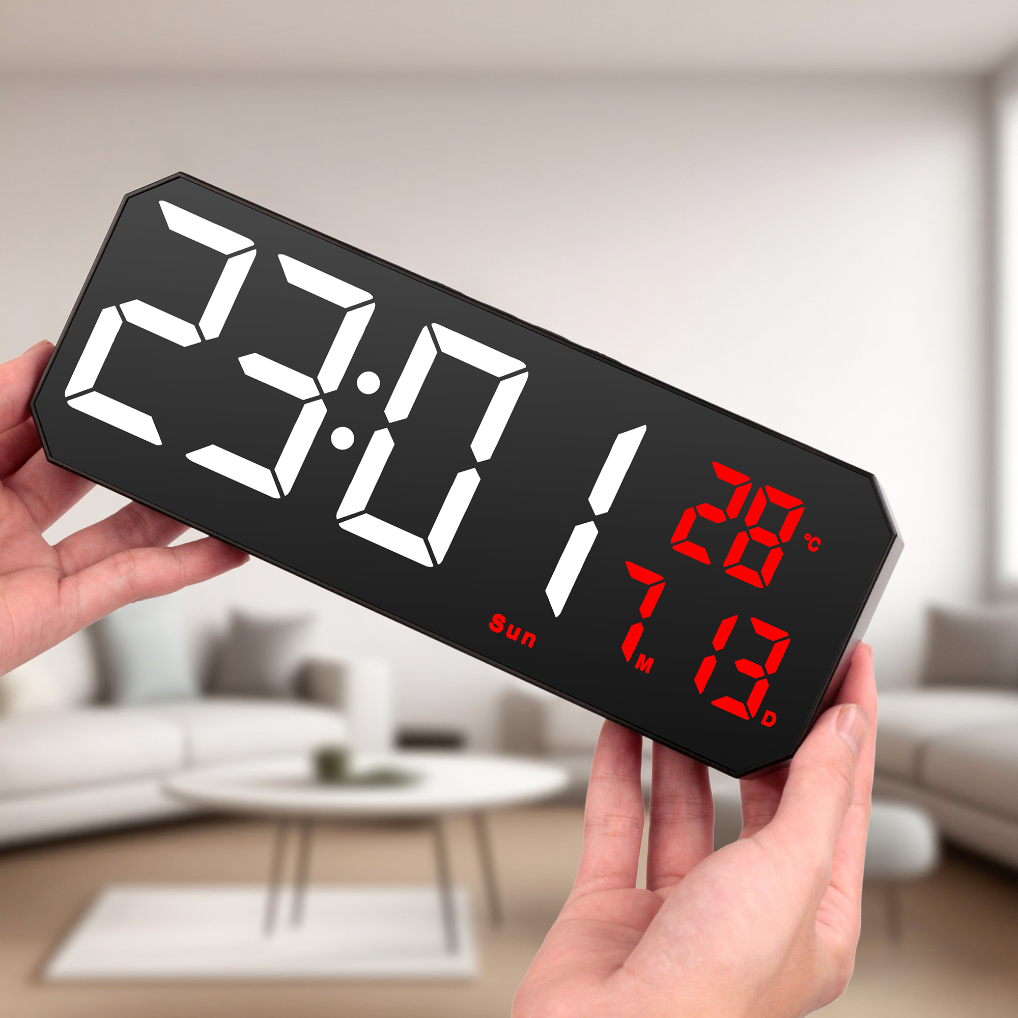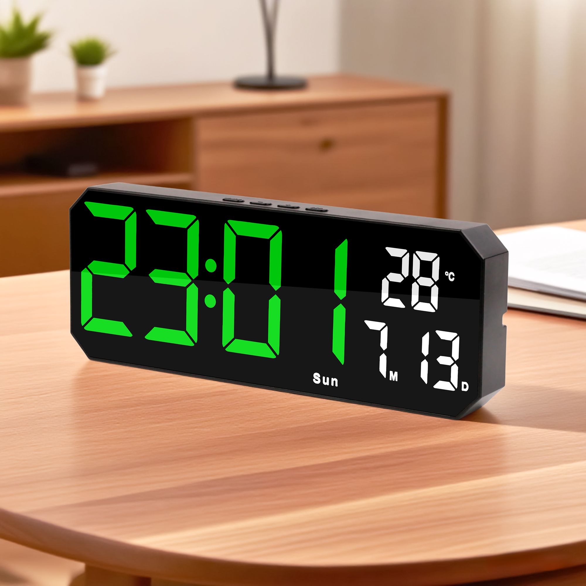 Crafted from durable ABS material with a wood grain finish, this Desk Clock combines functionality with aesthetic appeal. Powered by 3 AAA batteries (not included), it’s easy to set up and operate, ideal for both home and office use.