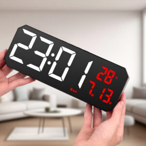 Enhance your workspace with the HY 5505 modern Desk Clock, designed with a sleek wooden look and a vibrant color LED display. This stylish and compact timepiece measures 24×9×2.7cm, making it perfect for desks, shelves, or bedside tables. The minimalistic square shape complements modern interiors, while the multifunctional display offers essential features like time, temperature, and alarm.