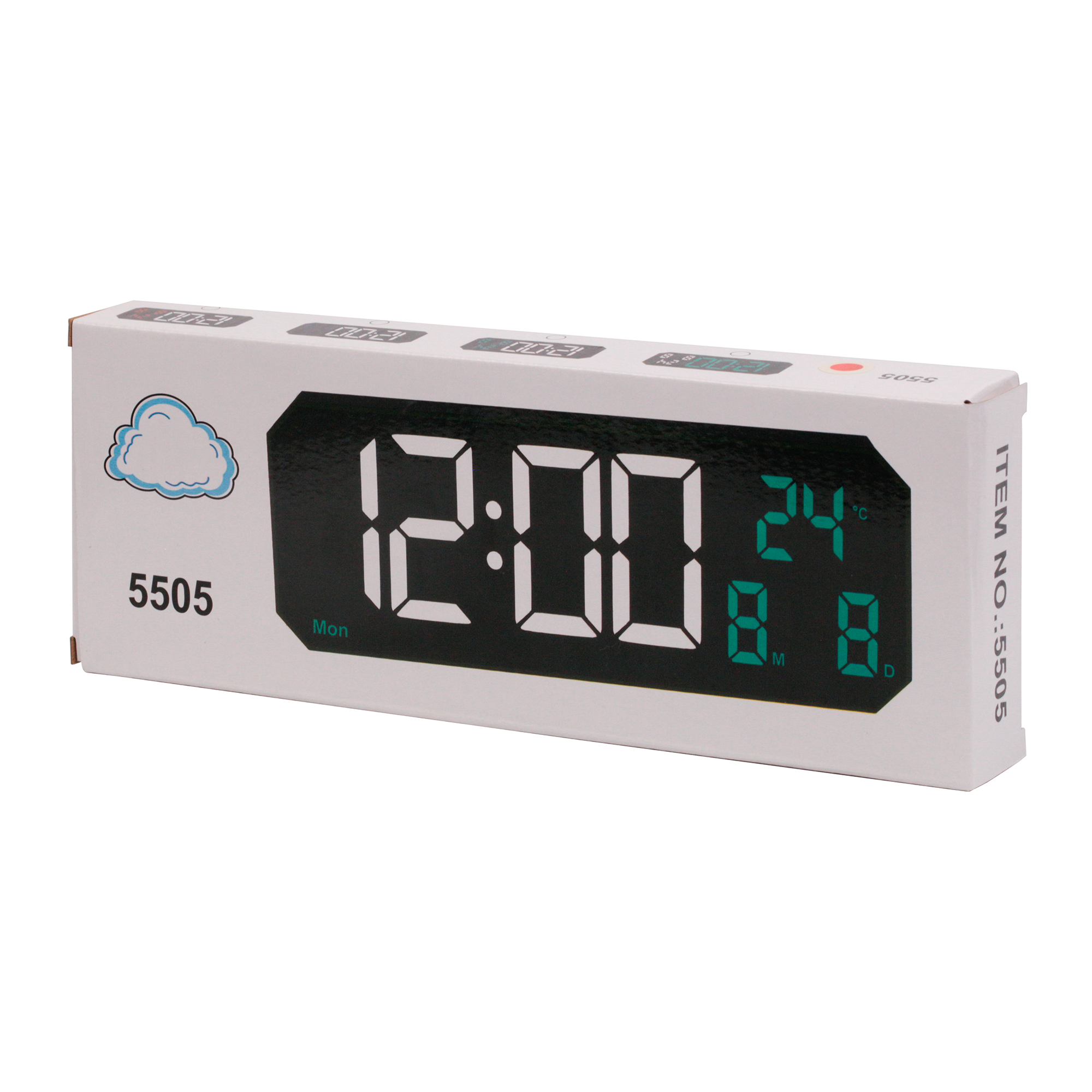 Functions: Time display, alarm, temperature