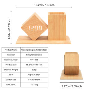 The Pen Holder Clock (Model: 1088) is the perfect combination of style and function, designed to keep your workspace organized while helping you stay on time. With its modern square design, this clock doubles as a pen holder, offering a practical solution for both time management and desk organization. Ideal for offices, study rooms, or as a thoughtful gift, this clock adds both elegance and utility to any desk.