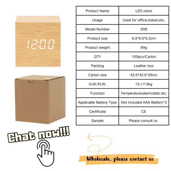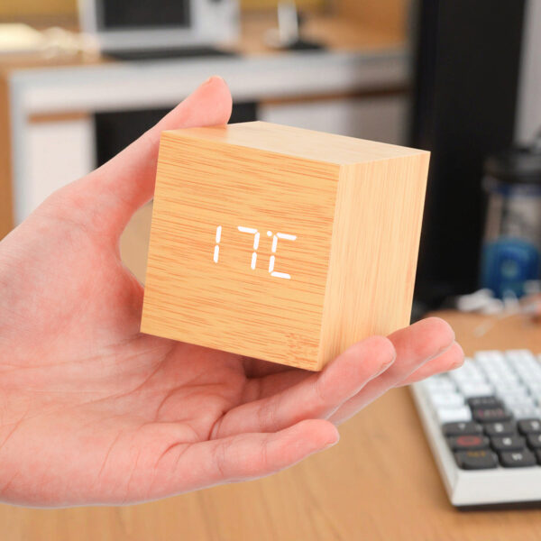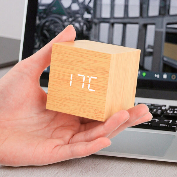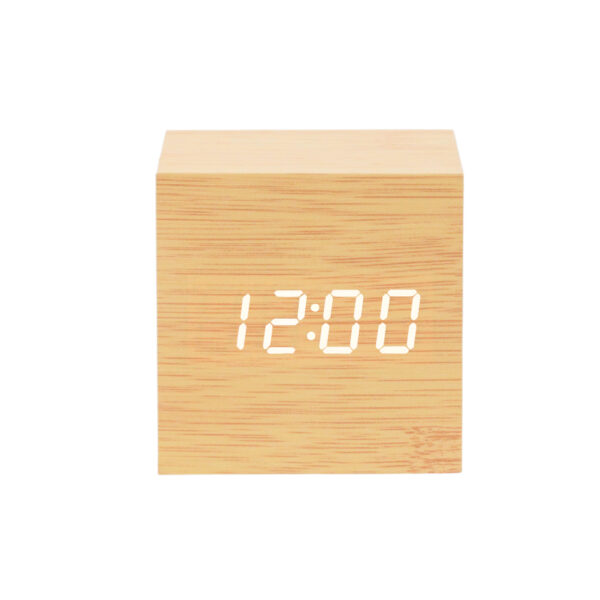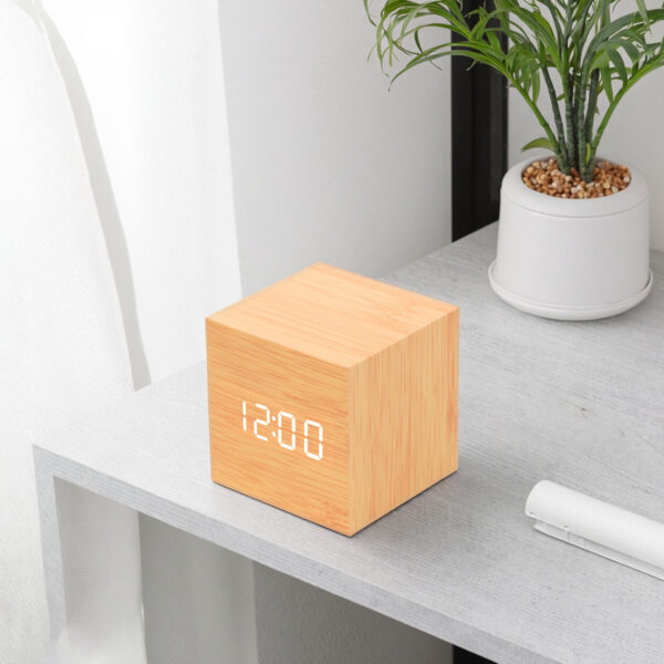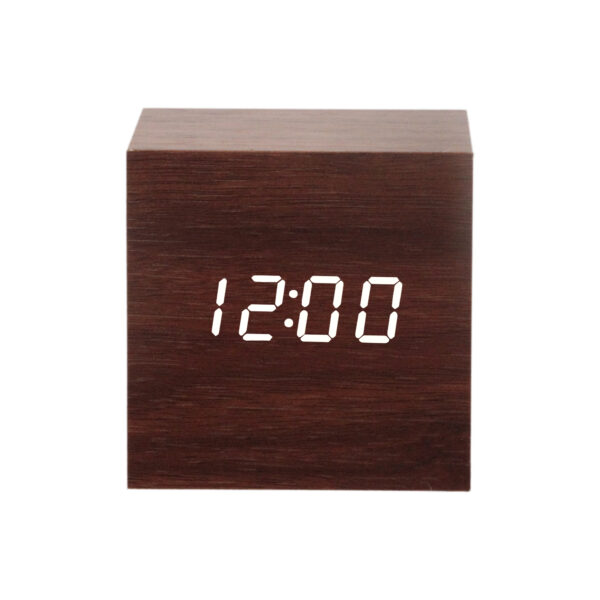 Modern Home Decor Electronic LED Desk Alarm Clock Fashion Cube Portable Wooden Design Clock with USB and Battery Supply